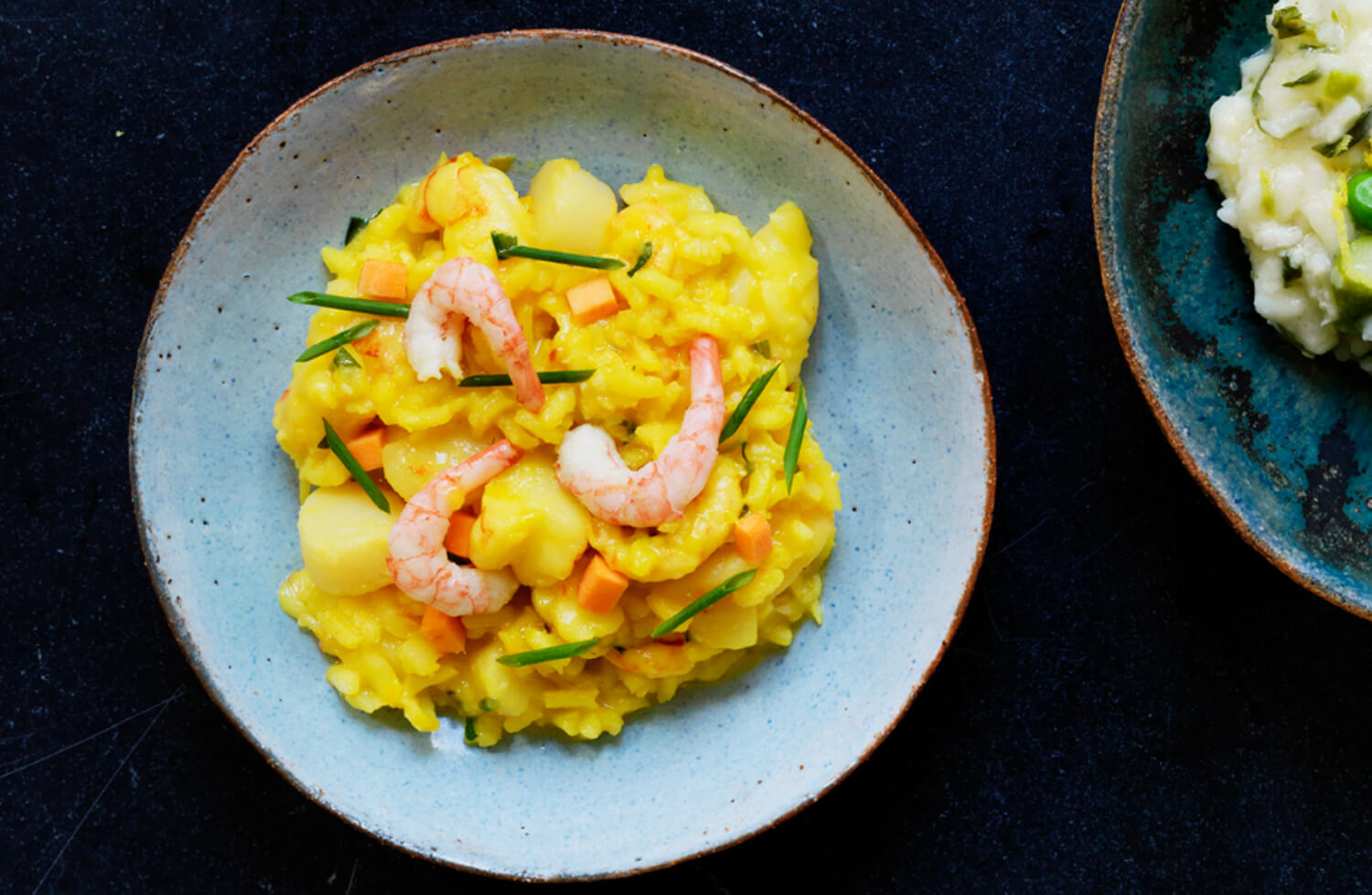Skalldyrsrisotto med safran passer til et eget måltid for én person eller som tilbehør til fisk for 2-3 personer.